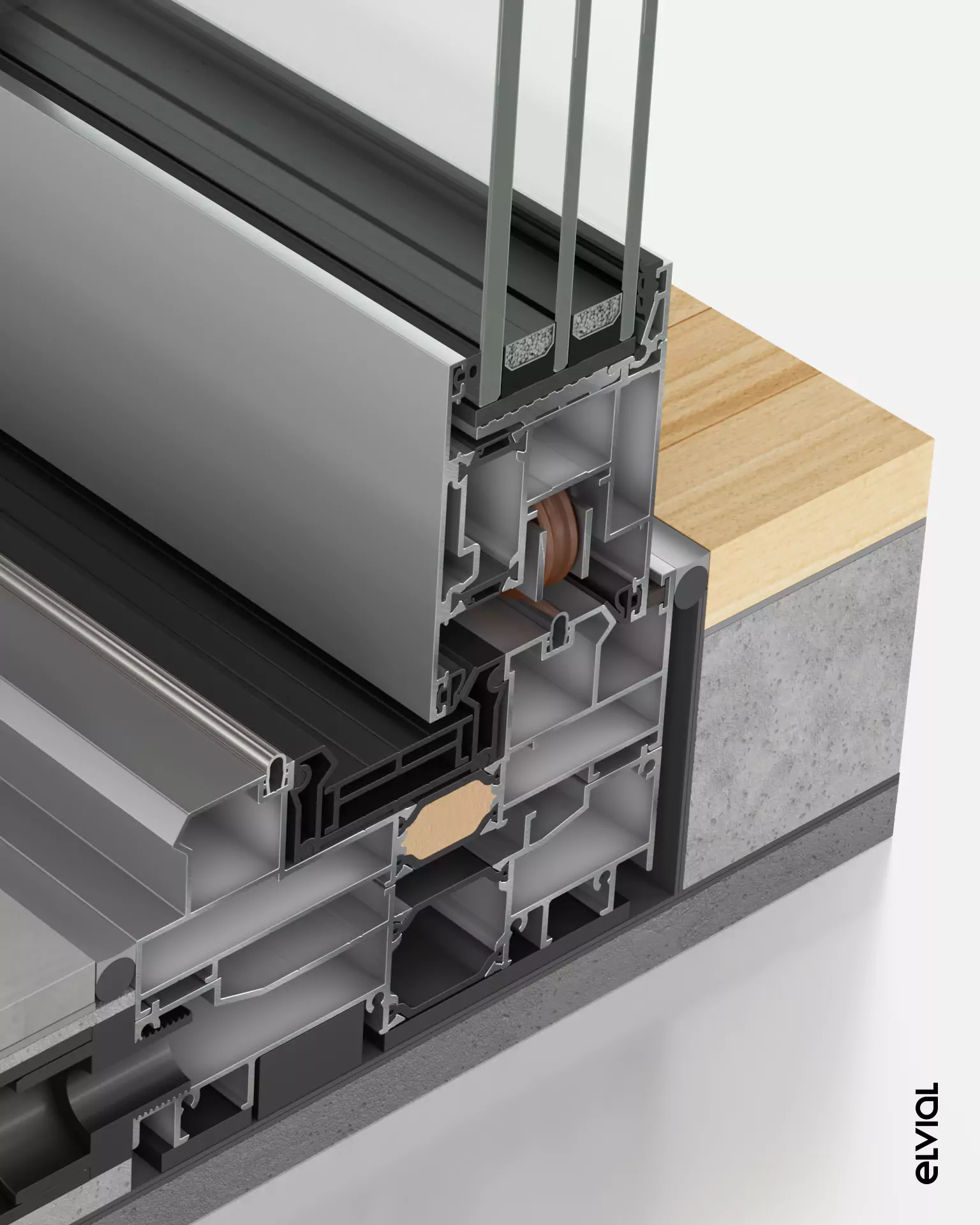 - Elastomeric central sealants of excellent design, which fit perfectly on the aluminium surface, providing high sealing performance